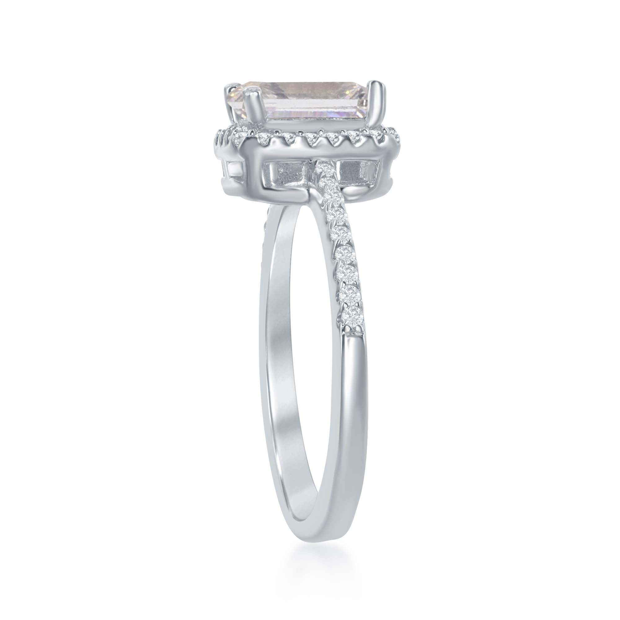 • Sterling Silver Emerald Cut Cubic Zirconia Halo Ring