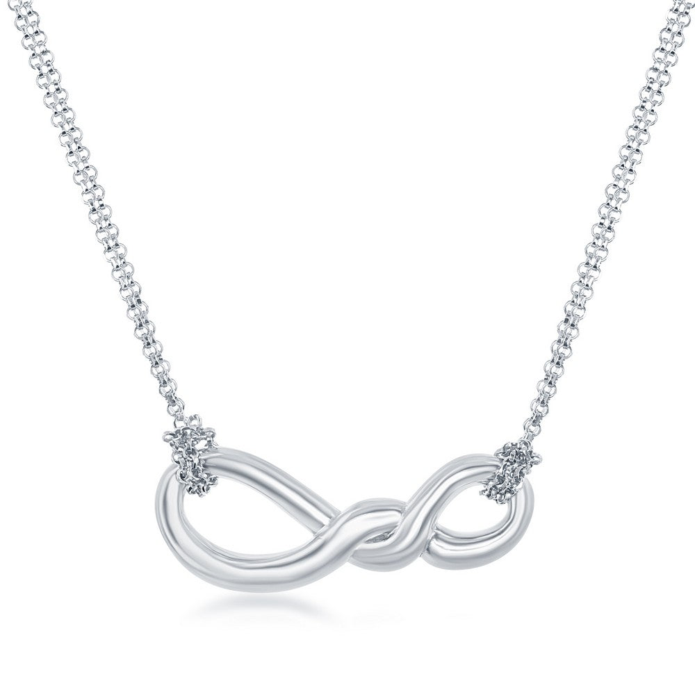 Sterling Silver Infinity Knot Double Strand Necklace on adjustable 17+1" Sterling Silver Chain.