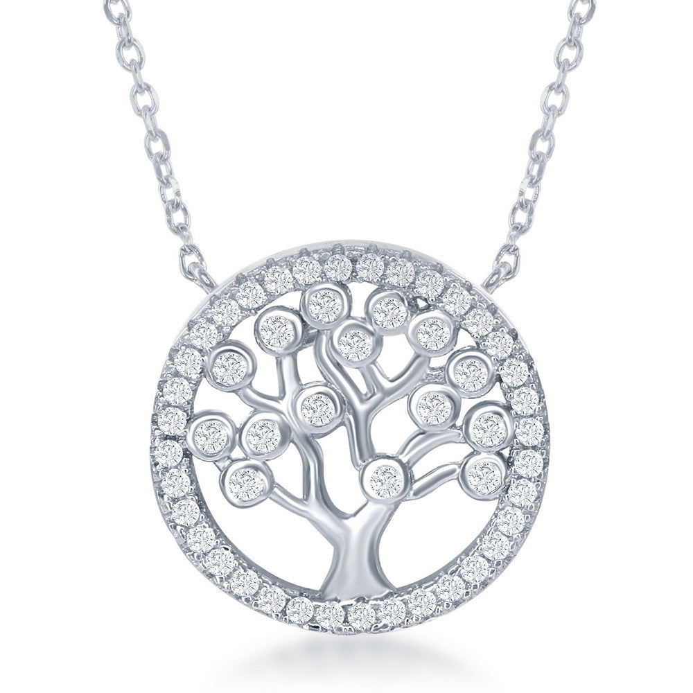 Sterling Silver Round CZ Tree Necklace on 17+1" Sterling Silver Chain.
